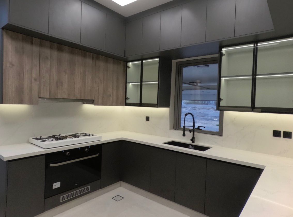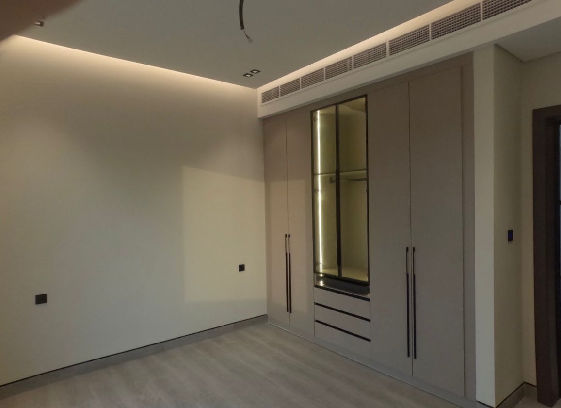 The property features a smart home system and is finished to super luxury standards, combining modern design with high-quality materials. It is equipped with central air conditioning (American Carrier), a fully fitted kitchen with appliances and accessories, and elegant interior décor throughout.